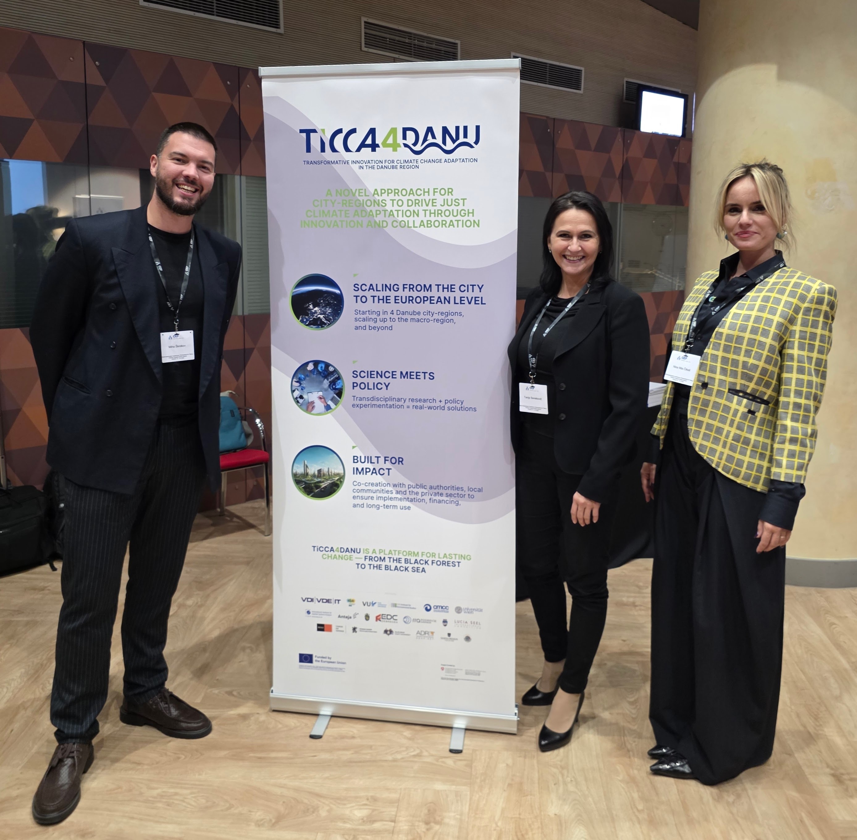 Skupaj z nami sta se konference udeležila še dva predstavnika partnerjev v projektu TiCCA4Danu, Nina Mia Čikeš, ICLEI, ter Miha Škrokov, ANTEJA ECG svetovanje. V okviru drugega dne konference smo predstavili projekt TiCCA4Danu kot primer dobre prakse na področju soočanja s prilagajanjem na podnebne spremembe. V okviru prvega dne pa je Nina Mia Čikeš sodelovala tudi na okrogli mizi pod naslovom »Politike za ukrepe: usklajevanje prizadevanj javnih deležnikov«, v okviru katere je bilo poudarjeno, kako strategije pretvarjamo v konkretne rešitve: lokalne zelene pogodbe, dialogi med mesti in industrijo ter mentorstveni programi v kontekstu mestnih regij.