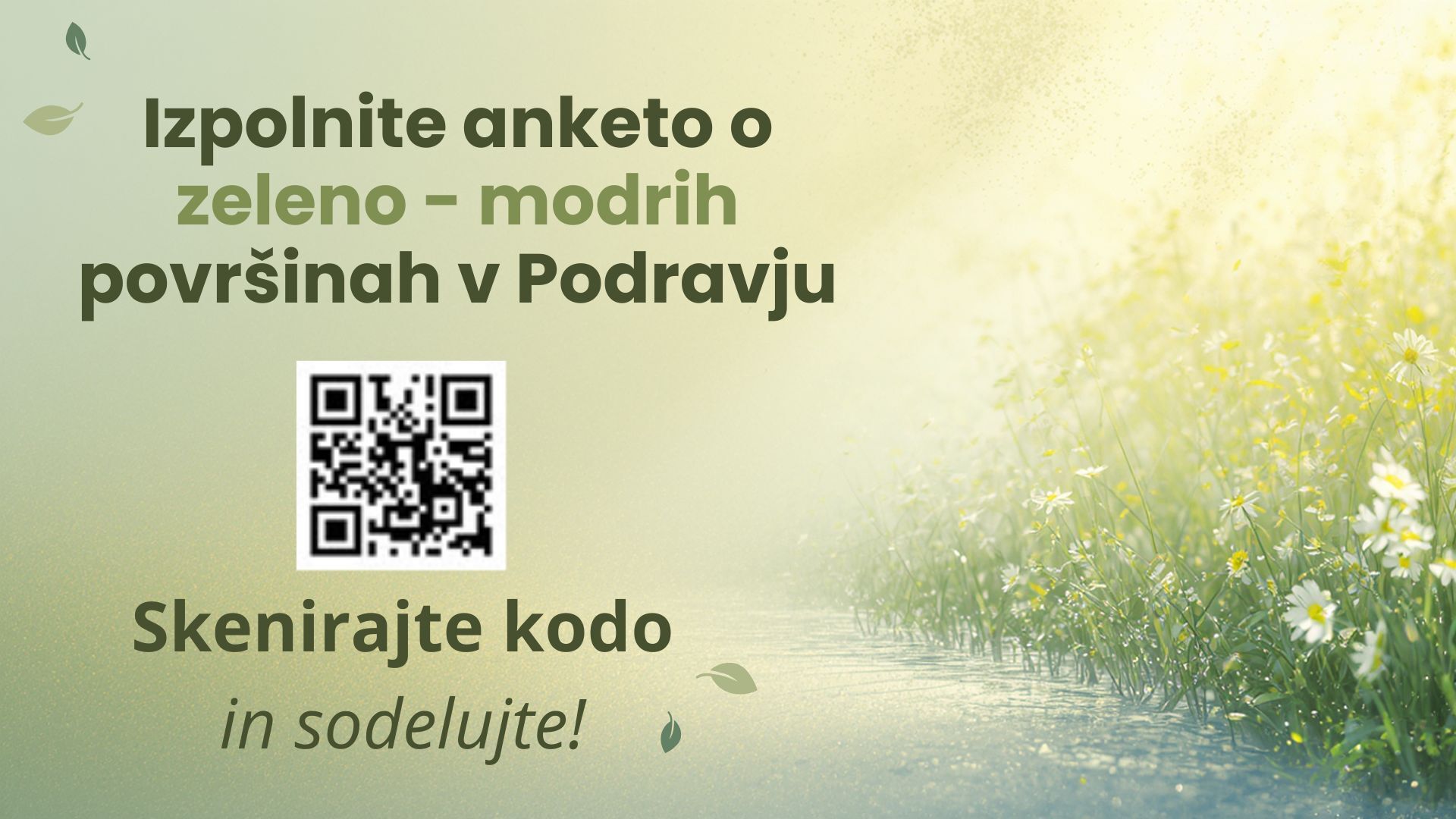 Vabimo vas, da sodelujete pri raziskavi javnega mnenja o javnih naravnih površinah v podravski regiji.